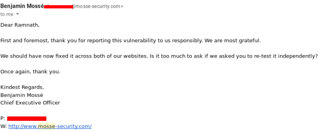 However, mosse-institute also has another website mosse-security . com. While reviewing the contents across the two, i thought the platform.mosse-security.com was the training app web app. This resulted in the following error.