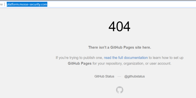 Now this is the classic indicator for a subdomain takeover. In simple terms, the ‘platform.mosse-security. com’ domain is pointing to github pages and there is nothing on the end of Github to resolve this domain resulting in a 404 error. To that fact, i checked other domains and every subdomain that i could attempt pointed to a 404 error.